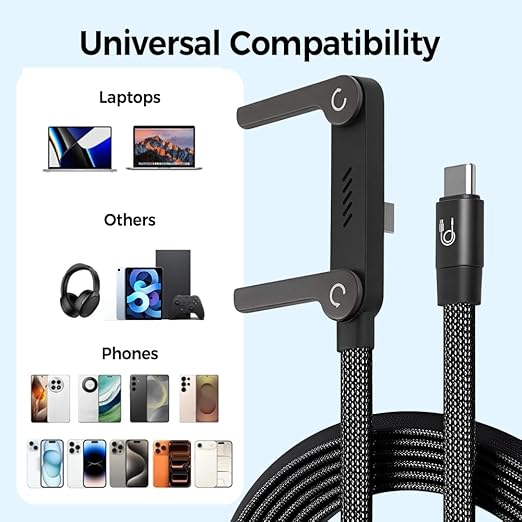- 【90-Degree Angled Connector for Ergonomic Use】 Designed with a comfort-focused elbow-shaped Type-C connector, this cable reduces port strain and offers a natural grip during prolonged use. Its streamlined form ensures a secure fit and tangle-free operation, enhancing your mobile gaming and charging experience.
