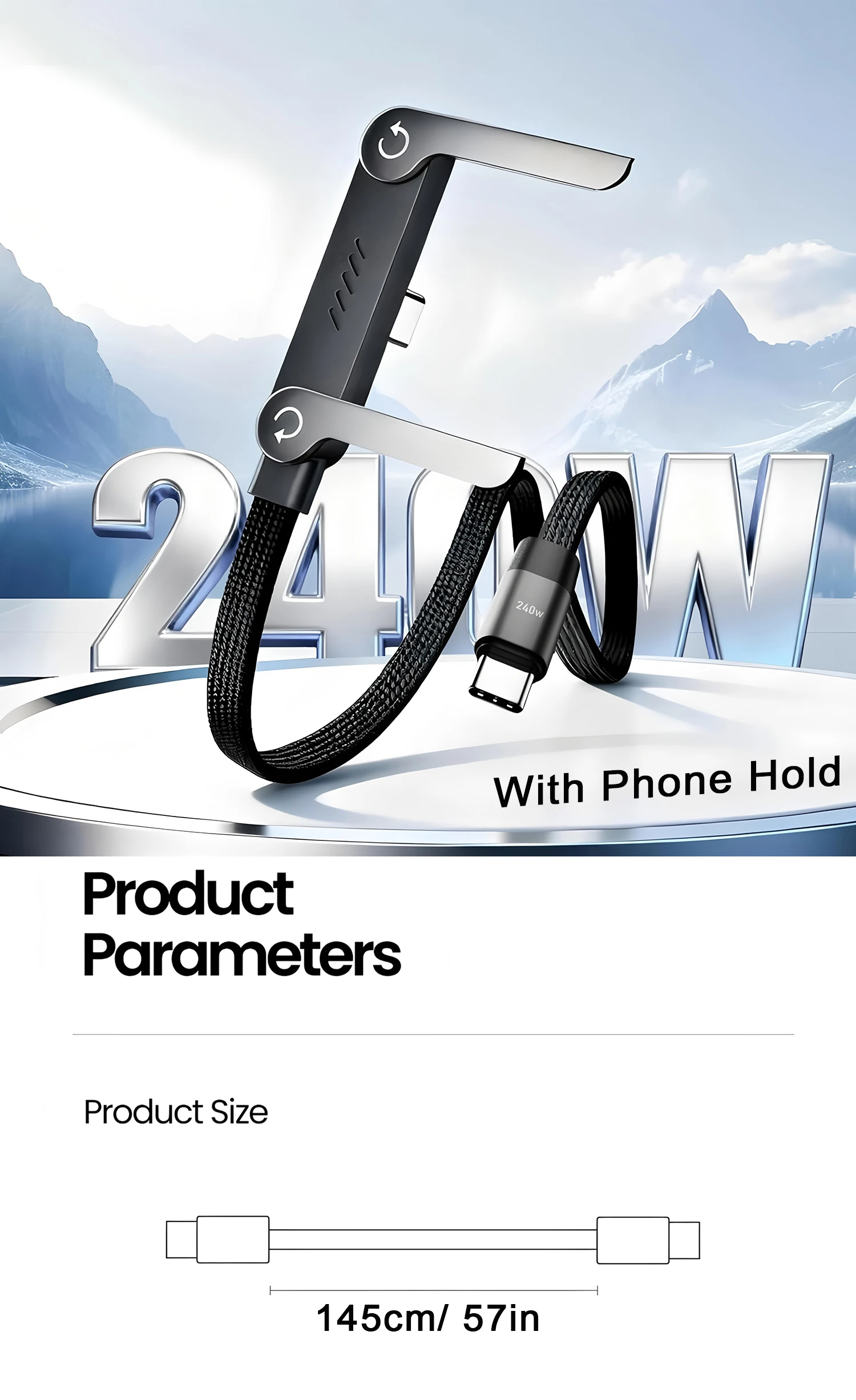 - 【2-in-1 Charging Cable with Adjustable Phone Stand】 Combine convenience and functionality with the integrated folding phone holder. Made from durable zinc alloy and aluminum alloy, it offers 360° rotation and tilt adjustment for hands-free viewing in portrait or landscape—ideal for video streaming, gaming, or video calls.