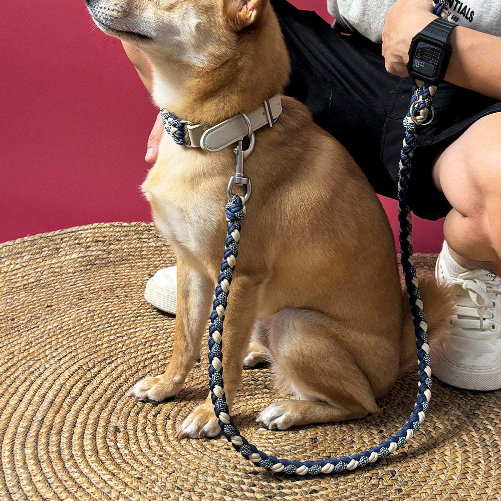 Elevate your dog's walking experience with our Hand-Woven Leather Multifunctional Anti-Pull Dog Collar and Leash Set. This collection is ideal, for lovers who appreciate quality and practicality offering a blend of sturdiness and adaptability.